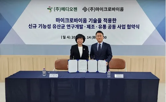 메디오젠, 마이크로바이옴과 기능성 유산균 사업 협력 mediogenweb 5월 14, 2024 국내 프로바이오틱스 제품 생산 1위 기업 메디오젠과 마이크로바이옴은 마이크로바이옴 기술을 바탕으로 기능성 유산균 전주기 사업을 위한 업무협약(MOU)을 체결했다고 14일
