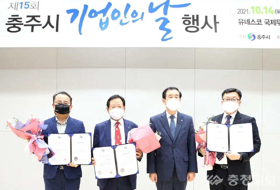 기업인 예우하는 충주…15회 기업인의 날 행사 개최 mediogenweb 10월 18, 2021 메디오젠·대우선재·트루나스 유망기업 선정 기업인을 예우하는 충북 충주시와 충주상공회의소가 14일 국제무예센터 국제회의장에서 ’15회 충주시 기업인의 날’ 행사를 가졌다. 기업인 사기진작과 기업하기