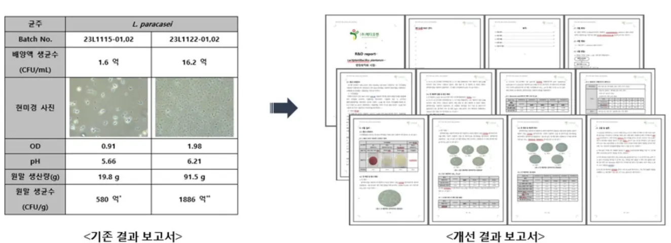 1.1 × 1010 CFU/g → 1.05 × 1011 CFU/g (▲ 9.5배)