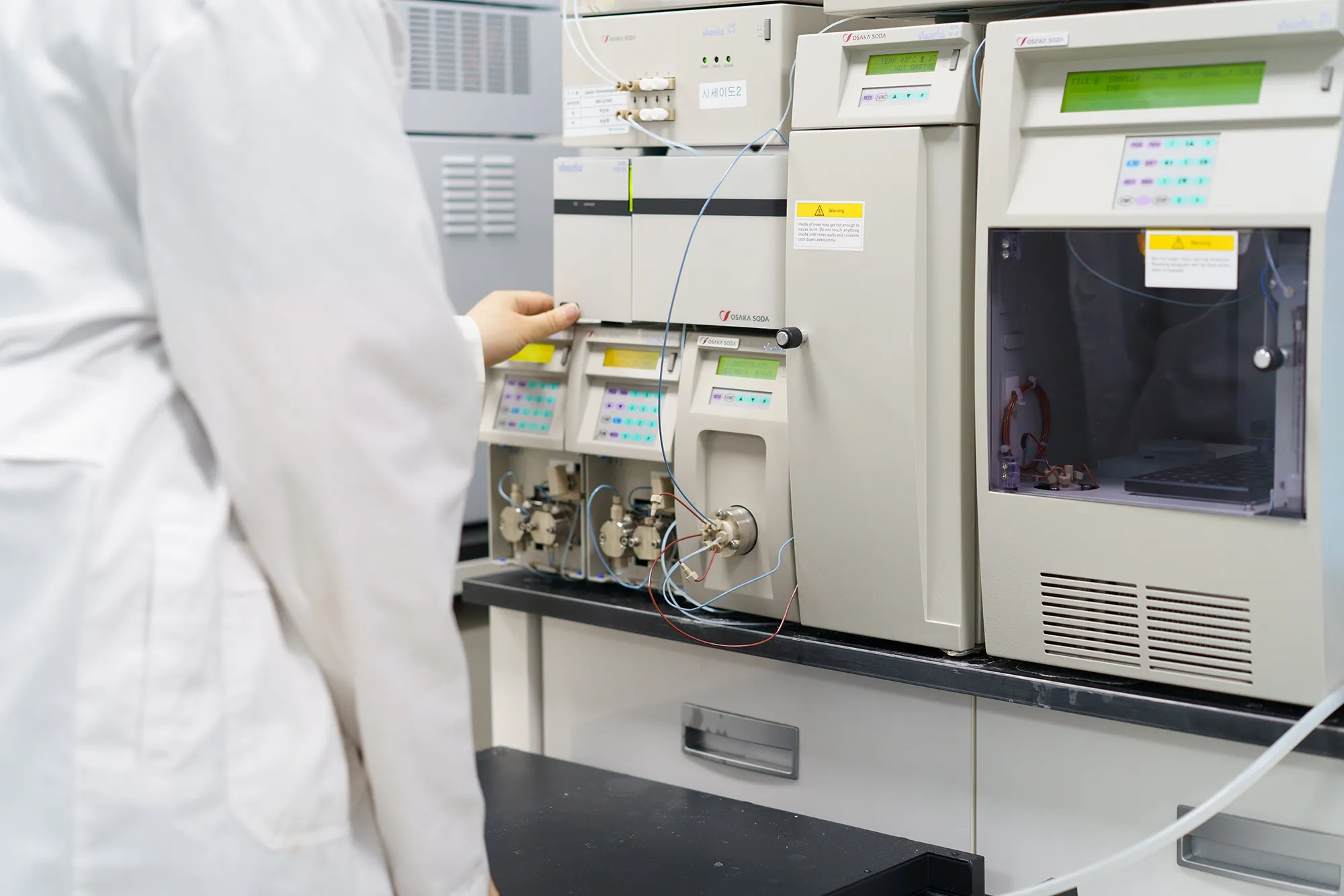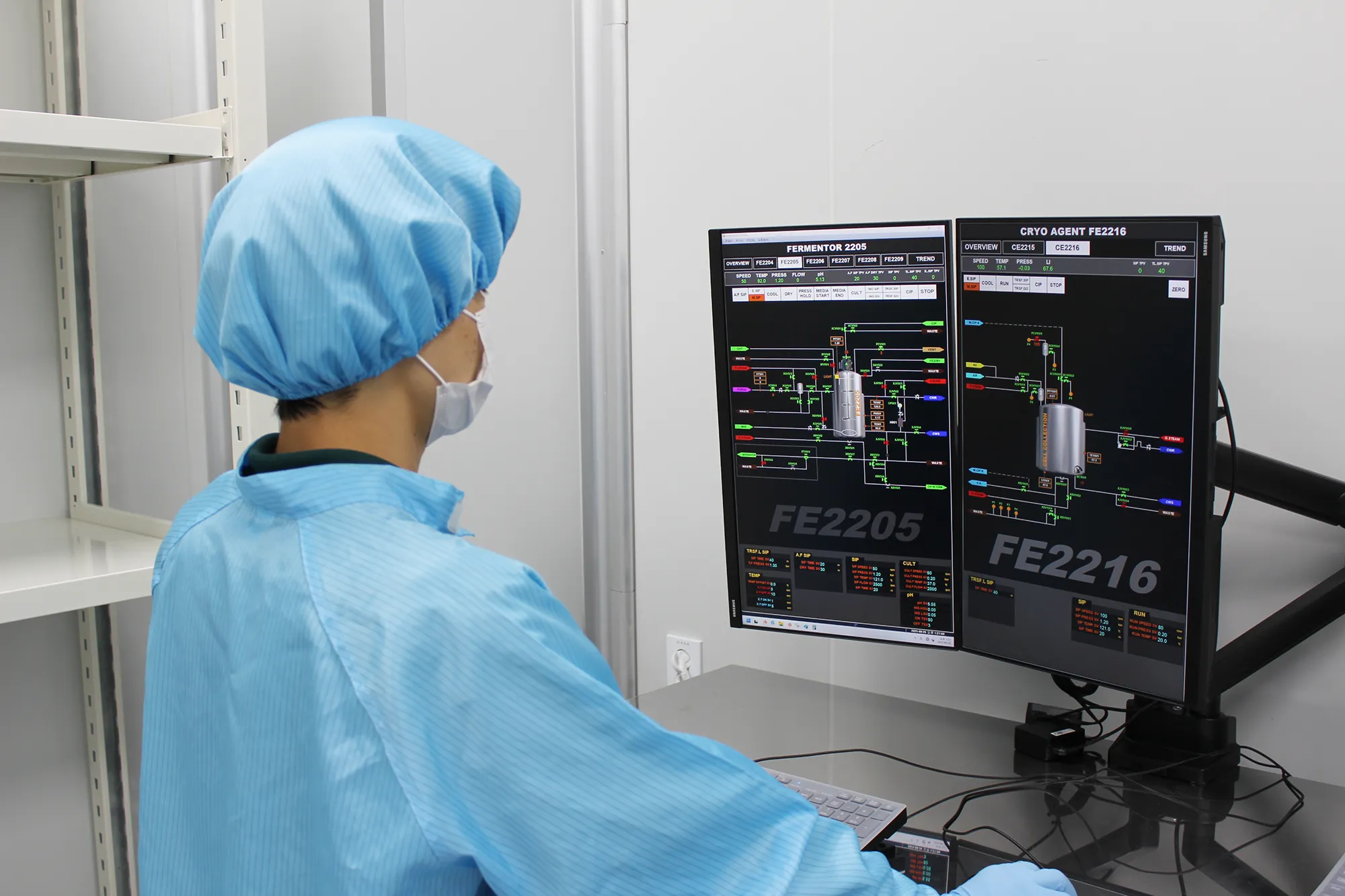 유산균 배양 공정은 컴퓨터 기반의 자동제어 시스템에 의해 정밀하게 관리됩니다. 배양온도, pH, 용존산소(DO) 그리고 교반속도 등의 주요 공정 변수들을 실시간으로 모니터링하고 제어함으로써 균일한 배양 환경을 유지하여 균일한 품질의 유산균의 생산이 가능합니다.